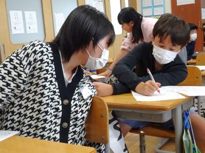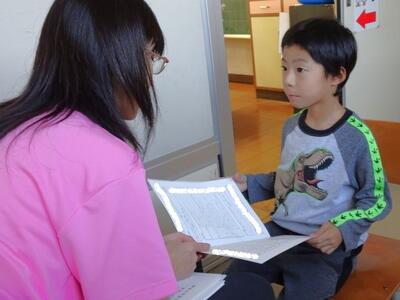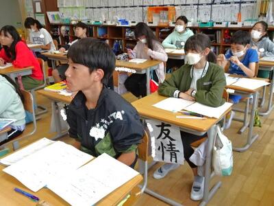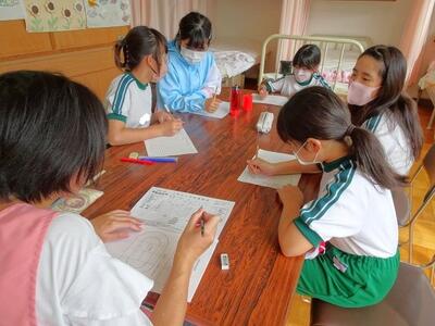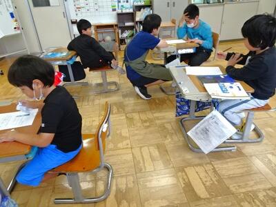 【4・5・6・7組】1枚目の写真は、QーUの質問に答えている様子です。一つ一つを確認しながら行いました。