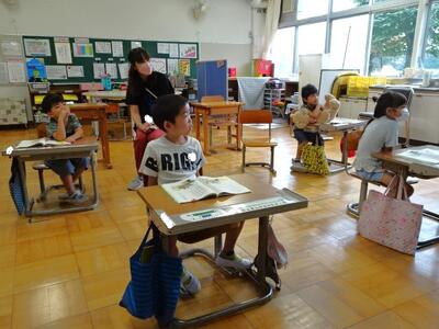 【4・5・6・7組】1枚目の写真は、国語の時間の様子です。学年等によって学習内容はちがいます。課題への取り組みが早くなりました。
