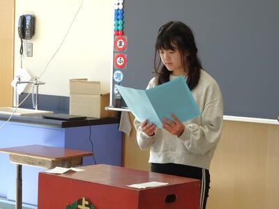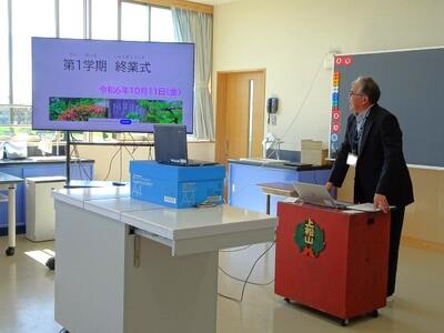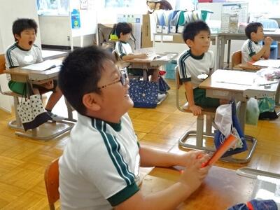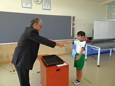 10月17日(木)から第2学期が始まりました。17日の第1校時には、第2学期の始業式を行い、学校長の話の後に3人の代表児童の2学期の目標についての作文発表がありました。代表の児童も立派な発表ができましたし、聞いている各教室の子どもたちも、立派な態度で発表を聴くことができました。