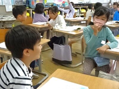 【2年生】1枚目から3枚目の写真は、国語の「お手紙」の学習の様子です。登場人物を確認した後は、登場人物の気持ちに合わせて、台詞の言い方を工夫しながら読んでいます。