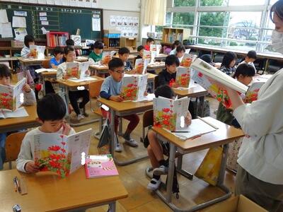 23日(水)の朝に、読み聞かせを実施しました。アリスの会や保護者の皆様に来ていただき、お話を聞かせていただきました。子どもたちは、目を輝かせながら、お話しの世界に浸っていました。