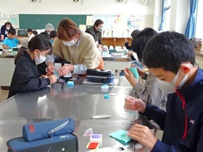 【手芸クラブ】計画通り、小物作りの続きを行いました。みんな器用に作っていきます。