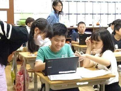 【5年生】1枚目の写真は、社会科の「工業生産とわたしたちのくらし」の学習の様子です。今日は、大工場と中小工場の違いについて調べて話し合いました。