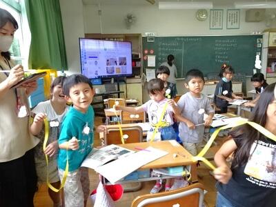 【4・5・6・7組】交流の学習も順調です。1枚目の写真は、英語活動に参加している様子です。