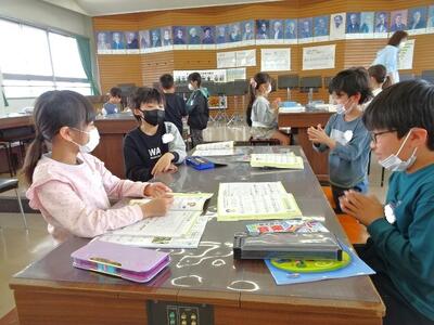 【6年生】1枚目の写真は、国語の「つないで、つないで、一つのお話」の学習の様子です。最初と最後の分を決めて、グループで2周する間に話が完結するように1文づつつなげていきます。いろいろな話につながっていました。