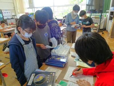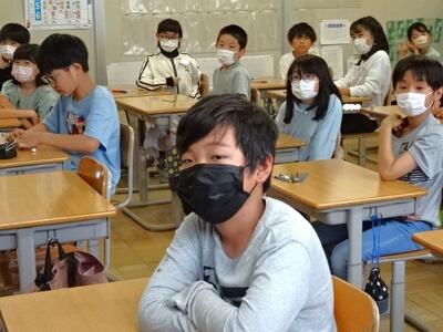 【5年生】1枚目の写真は、理科の「メダカのたんじょう」の学習の様子です。待望のメダカのたまごが生まれました。今日は、電子顕微鏡を使ってたまごの観察を行いました、