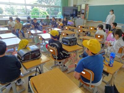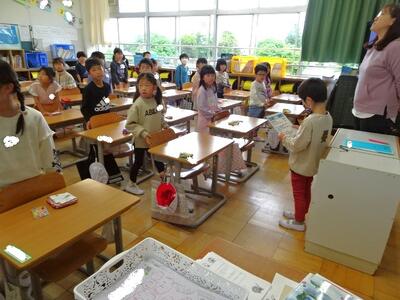 5月8日(水)の2時間目に、児童会活動の「1年生をむかえる会」を実施ました。この日にために、児童会企画委員会で話し合いを行ったり、2~6年生が1年生へのプレゼントを作ったりして、準備を進めてきました。当日は、企画委員会の子どもたちの進行で、会を実施しました。自己紹介やプレゼント贈呈、そして校舎内を使ったスタンプラリーなど、活動量の多い笑顔いっぱいの会となりました。