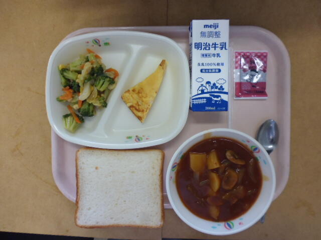 今日は、お話しランチメニューです。絵本「おべんとうばこあけたらね」から"たまごやき"です。