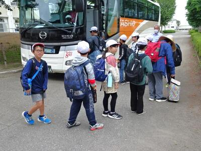 【2年生】2年生も、楽しみにしていた遠足です。2年生は「なかがわ水遊園」に行きます。教室で準備をして、キラキラ広場で出発式をしてバスに乗り込みました。現地での様子は、後日お知らせいたします。