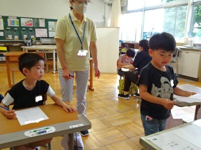 【1年生】1枚目の写真は、算数の「おなじかずのなかまをさがそう」の学習の様子です。この単元の学習も、いよいよ「10」の構成に入りました。10は、いくつといくつか、〇を塗りながら調べていました。