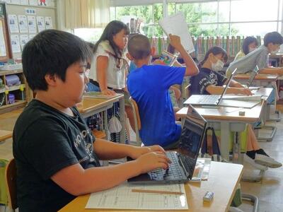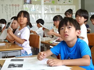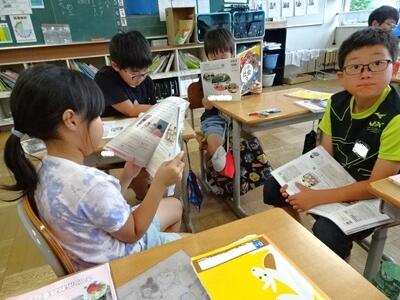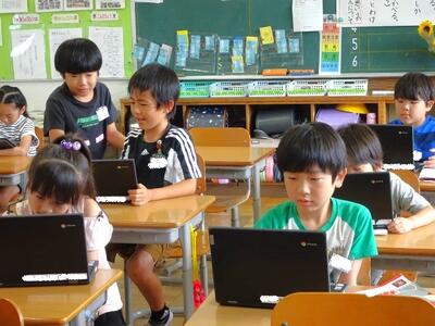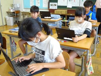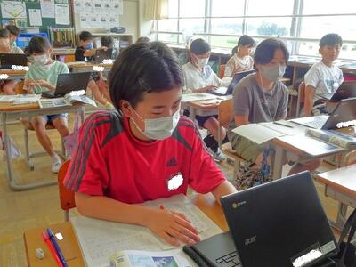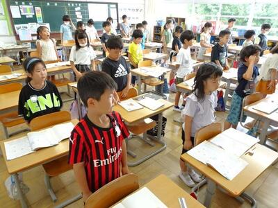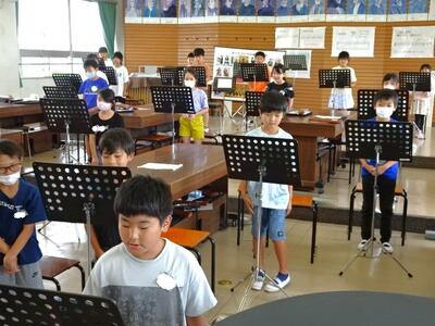 【4年生】1枚目の写真は、音楽の「響きのある歌声」の学習の様子です。「プパポ」を元気よく歌っています。主旋律と副旋律に分かれて、まさしく響きのある歌声で歌っていました。