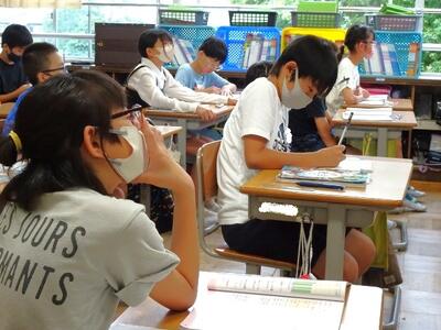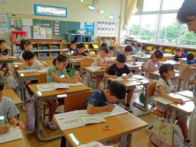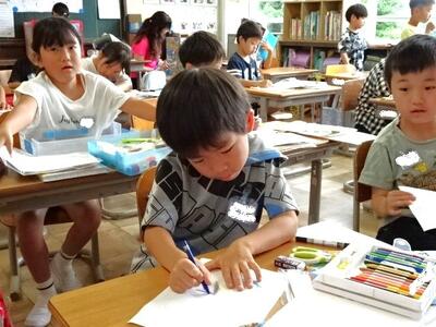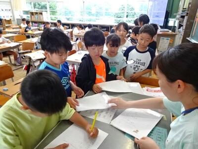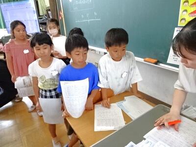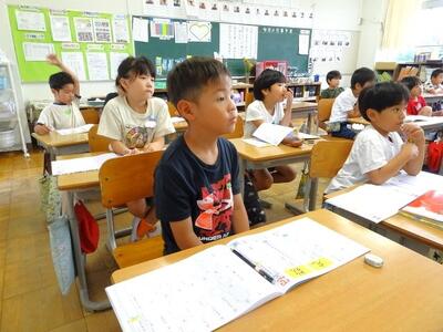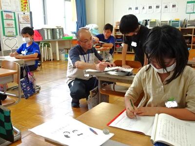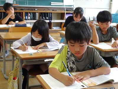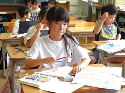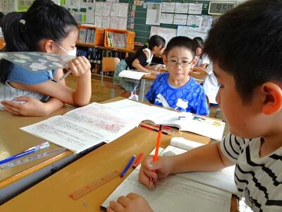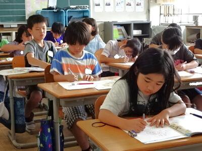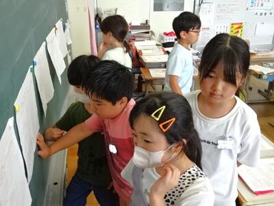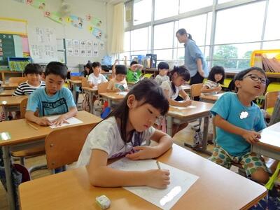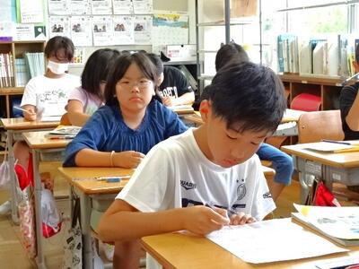 【2年生】1枚目の写真は、生活科の「地域たんけん」の学習の様子です。先週の地域たんけんで自分がお世話になった施設にむけて、感謝のお手紙を書いています。