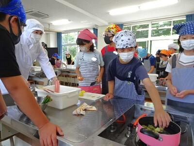 【5年生】1枚目の写真は、家庭科の「ゆでる調理でおいしさ発見」の学習の様子です。今日は、計画通りにホウレンソウやジャガイモをゆでて、おいしくいただきました。