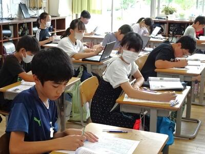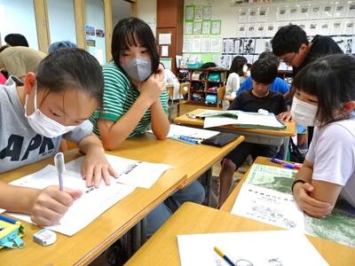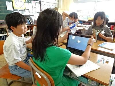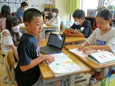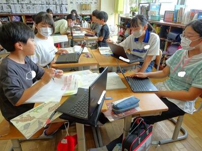 【6年生】1枚目の写真は、総合的な学習の時間の一コマです。「鎌倉にまなぼう」の学習で、修学旅行での班別行動の場所を念入りに検討しています。