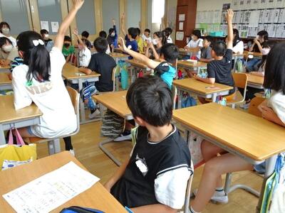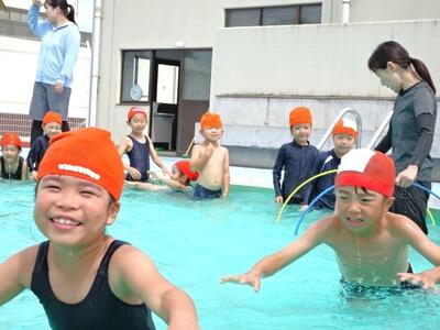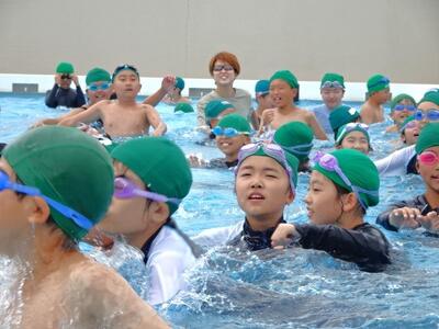 【4・5・6・7組】交流の時間の体育のプールは、みんな楽しみにしています。