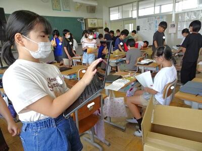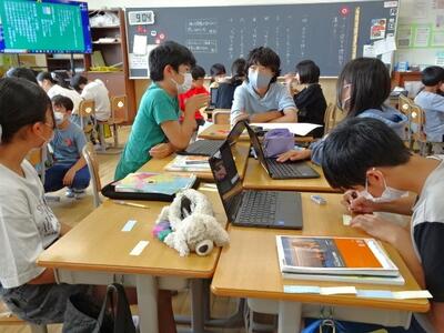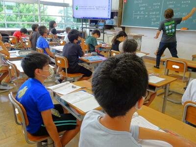 【4・5・6・7組】1枚目の写真は、学級活動の時間の様子です。今日は、計画通りボールを使ったゲームを行います。4人で考えたことを実行しました。