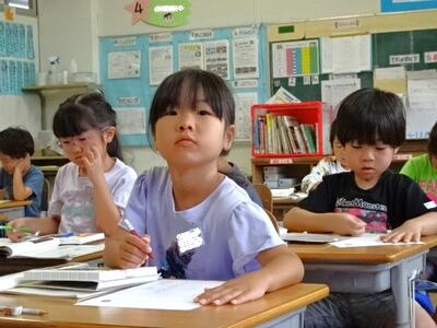 【1年生】1枚目の写真は、算数の「のこりはいくつ ちがいはいくつ」の学習の様子です。1年生の学習も、いよいよひき算に入りました。まずは、5までの数を使って、ひき算のやりかたを学んでいます。