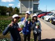 食育プロジェクトの3菜(ダイコン・レタス・ブロッコリー)も収穫の時期を迎えました。今日は6年1組がブロッコリー収穫をしました。(6年2組は来週)5日間の秋休みの間に、また大きなり子どもたちもびっくりです。今日は来客の多い1日でしたが、お見せしたらその見事さにこれもびっくりされていました。6年生は自分で収穫をして、一人一つ大きなブロッコリーを持ち帰りましたので、ぜひご家族でご賞味ください。次回はレタスとなります。食育プロジェクトに感謝です(*^_^*)