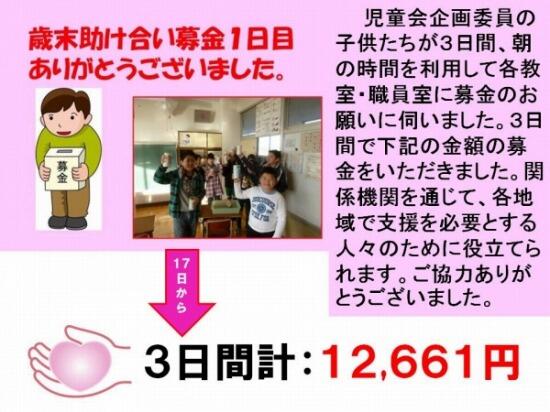 募金の御礼です。ありがとうございました。3連休の初日は穏やかな1日となりました。明日は冬至です。いろいろな風習がありますが、それぞれのご家庭の冬至をお過ごしください(*^_^*)