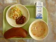 献立名:くろぱん ♡牛乳 ハンバーグ ♡キャロットポタージュ ♡コールスローサラダ