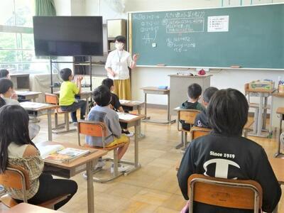 【3年生】3年生では、少人数指導が始まりました。3クラスの子どもたちを5つのグループに分けて、5人の先生で指導を行います。すると1クラスの人数がぐんと減って、授業の効率が高まるのです。子どもたちも、いつもと違う雰囲気で集中しています。