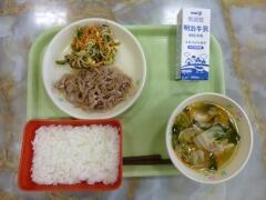 外はだいぶ暗くなってきました。雨の予報はぴたりかもしれません。今日の昼休みはなかよしタイム(縦割り班活動)の計画づくりとなります。そうしているうちに雨が落ちてきました。さて、今日のメニューでこれぞこくのある味と思ったのがえびぎょうざスープです。ぎょうざも小ぶりですが美味しかったです。ビビンバは肉のボリュームたっぷりで満腹感で満ち足りました。肉丼という感じです。ナムルと混ぜ合わせて程よい丼物の完成です。今日は久しぶりに、子どもたちの笑顔とともにお送りします(^_^)v