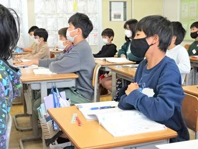 【4年生】1枚目の写真は、音楽の時間の写真です。「曲に合った歌い方」という題材の学習で、「とんび」の歌詞とその歌い方について話し合っています。グループで話し合ったり、意見を発表し合ったりして、「とんび」に合う歌い方で歌うことができました。