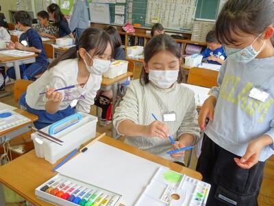 【1年生】1枚目と2枚目の写真は、図画工作の「わたしのおひさま」の学習の様子です。「おひさま」から感じたことや想像したことを、好きな色や形で描いていきます。いろいろなおひさまができました。