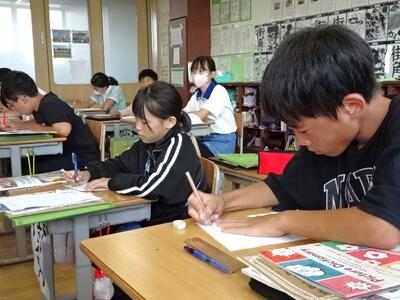 【3年生】今日は、書道の専門の先生がいらっしゃる日で、子どもたちはこの日を楽しみにしています。今日は、横画の練習をしたり、小筆の使い方を習ったりしました。