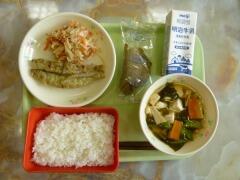 5月最初の給食は季節感を感じる食品・食材がありました。よく旬の食べ物といわれることがあります。ちょっと分類してみると「はしり」から「さかり」そして「なごり」へと旬の移ろいはあると思います。ただ食に関しては最近こうした感覚は薄くなりましたが…たけのこ、かしわもちetcを食してそんな思いがしました。さて、いそべししゃもですが、こうした揚げ方をするとまた違った味でよかったです。わかたけ汁も醤油味が塩梅でした。キャベツのおかかあえは濃い味に慣れている自分にとっては、反省の味でした。健康的ですね(^o^)
