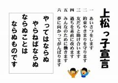 今日はうれしいことを見つけたので報告です。朝の児童集会で4年生の男の子がTシャツを着ていました。何気なく背面のプリントの文字を見ると上松っ子宣言の一文「ならぬことは ならぬものです」でした。学校で進めていることをこんな形で見られることが大変うれしかったです。つい報告したくなりました。小さなことが励みとなります(*^_^*)
