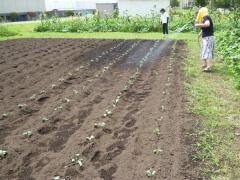 すでに報告済みですが、只今「食育プロジェクト」(野菜づくり)が進行中です。夏休み明けには、6年生に事業の説明をしてから、大根作りに入りますが、時期的な問題から過日、種苗組合の方々がブロッコリーを植えてくれました。中心にやっていただいている方は、氏家駅前の谷中種苗店さんです。