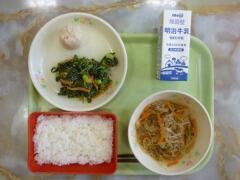 さて、本日は総合練習の疲れをとる栄養補給に十分な、今月最大カロリーとなります。これで午後はしっかり勉強です。「いりこなめし」味付けもちょうどよくて副食がなくてもそのまま食べられます。厚焼きたまご、ツナと好物の目白押し。そしてわかめ、豚汁の肉・野菜の具材と今日の給食は盛りだくさんです。暑くなった体をシューアイスで冷やして、今日も完食ごちそうさまでした。
