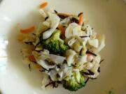 さて、今日も給食にはブロッコリーが登場。野菜づくり講師の谷中さんに尋ねると「これからのブロッコリーは甘みがあって美味しい」、と話をされていました。わき芽のように出るブロッコリーが畑では今日も収穫されています。隣に目を移すと煮物があります。ちょっと普段とは違う様子です。「ごま煮」という献立でわかりました。ごま風味です。初めてのメニューになると思いますが、大変美味しいです。