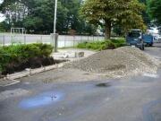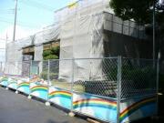 上松山小学校では、現在、体育館の耐震工事と正門の拡張工事を行っています。本来であれば、8月5日は、全校登校日でしたが、子どもたちの出入りが危険であるため、中止とさせていただきました。8月29日に子どもたちが登校するときまでに、工事を完了するために、関係者の方々も、連日汗だくでがんばっていただいています。