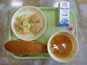 献立名:コッペパン マーシャルビーンズ ♡牛乳 たこナゲット トカゲおばさんのスープ ☆♡かぼちゃのサラダ