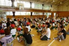 2年生の学年親子ふれあい活動が実施されました。今まで行われた学年の紹介ができなくて申し訳ありません。今日は蒸し風呂のような体育館でドッジビーを汗だくで頑張りました。終了後は空き缶つぶしにご協力をいただきありがとうございました。