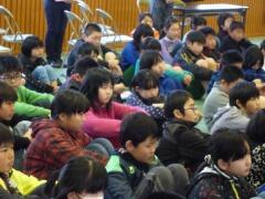 業間時の卒業式練習の後に、新井交通指導員より、高学年に向けて登校班の班長等交通安全のリーダーとなる4・5年生に心構えなどを話していただきました。班長・副班長としての心構え((1)目配り (2)気配り (3)あいさつ)、そして自転車の乗り方、帰宅時間などについて日頃の交通指導の経験を踏まえての内容でした。子どもたちは真剣に聴き入っていました。早速20日から自覚をもって行動を期待したいと思います(^_^)v