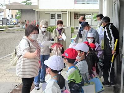 6月15日(水)に、2年生の生活科「どきどき わくわく まちたんけん」の単元の学習で、町探検に出かけました。上松山の地域にある様々な場所に訪問し、自分たちの生活との関わりに気づいていくという内容です。この日は、小雨の中ではありましたが、13カ所のお店や事業所の皆さんのところへ訪問させていただきました。また、この探検に合わせて、12名のボランティアの方が来てくださり、子どもたちの安全を守ってくださいました。