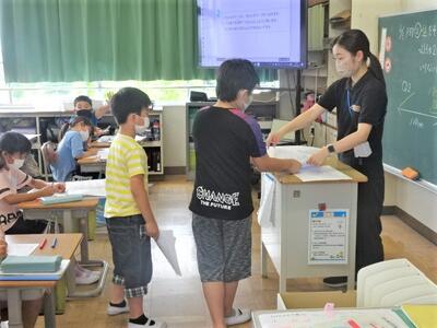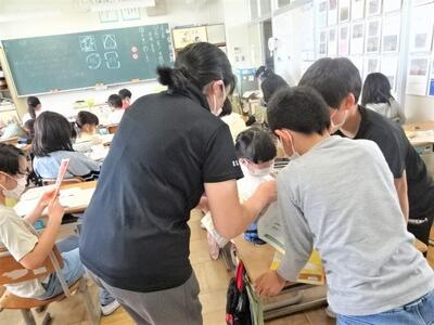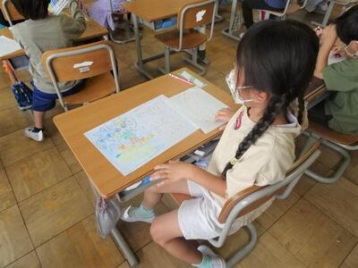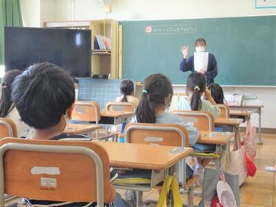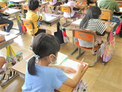 【2年生】1枚目の写真は、国語の「かんさつ名人になろう」よいう単元の学習で、観察カードなどの書き方について学習している様子です。生活科の野菜の観察とコラボをしているようですね。学習が最大限に効果を高められるように、意図的に計画しています。