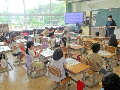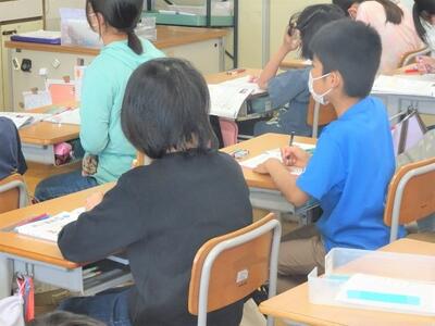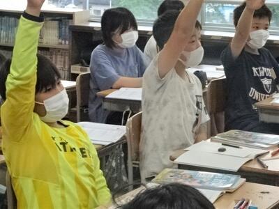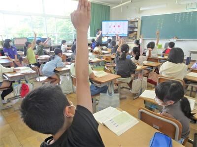 【4年生】4年生も、いつも意欲満々です。挙手の仕方も手本のようです。総合的な学習の時間には、先日行ってきた「なす高原自然の家」への宿泊学習に関するまとめが順調に進んでいます。