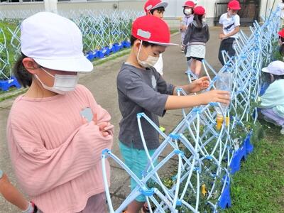 【2年生】2年生の生活科で育てている野菜が、毎日大きく成長しているように感じます。記録にも、クロムブックを活用して成長の写真記録を作っていました。クロムブックの活用もお手の物です。