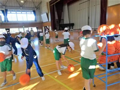 【6年生】1枚目の写真は、体育の時間の様子です。ネット型のゲーム「ソフトバレーボール」の単元に入りました。今日は、ソフトバレーボールのやり方を再確認しながら、ソフトバレー用のボールに馴染む活動を行いました。5年生の時にも行ったのですが、かんをとりもどすまでもう少しかかりそうです。