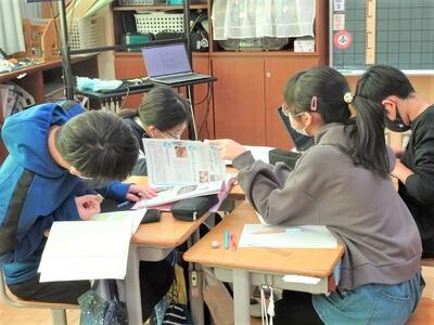 【4年生】1枚目の写真は、総合的な学習の時間の一コマです。「伝え合う心」という単元の学習で、これまで車椅子体験や白杖体験、認知症サポーター講座など、福祉についていろいろと体験したり学んだりしてきました。今は、自分なりにテーマを決めて調べてきたことを新聞形式でまとめています。