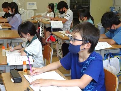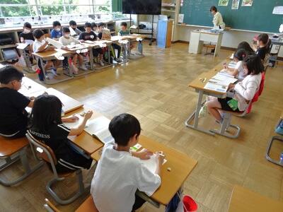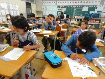 【4年生】1枚目の写真は、道徳の学習の様子です。今日は「お母さんのせいきゅうしょ」という題材の物語を使って、お家の方が自分たちに注いでくださる愛情について考えました。