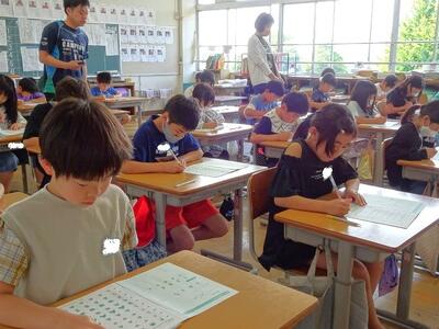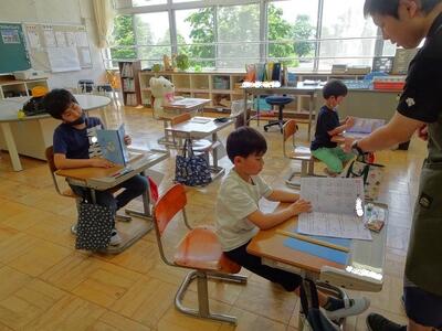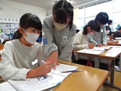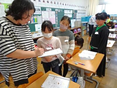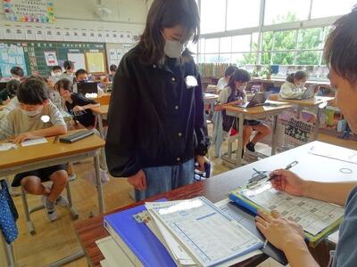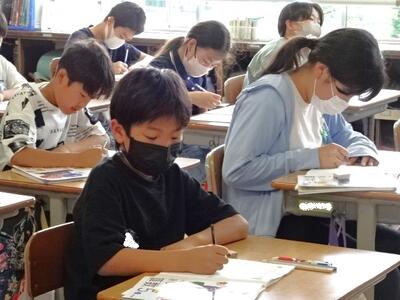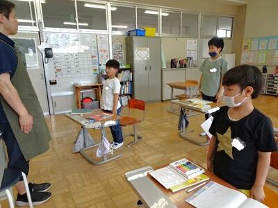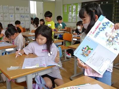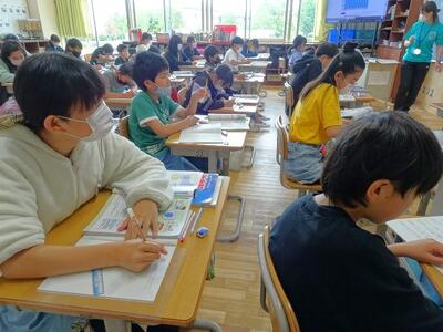 【5年生】1枚目の写真は、外国語の時間の様子です。前の時間に行った外国語のテストが返却されました。たくさんの◎をもらって子どもたちもニコニコです。