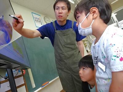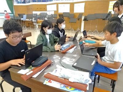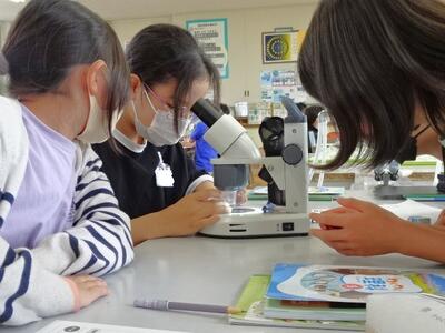 【5年生】1枚目の写真は、理科の「メダカのたんじょう」の学習の様子です。待望のメダカのたまごが生まれました。今日は、電子顕微鏡を使ってたまごの観察を行いました、