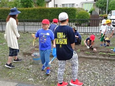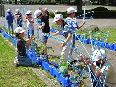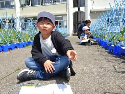 【4・5・6・7組】体育館近くの花壇で育てている野菜も順調に育っています。