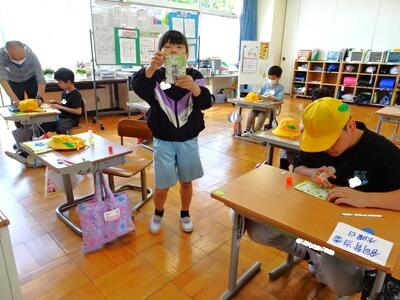 【4・5・6・7組】1枚目の写真は、生活科で育てている自分の野菜の観察をしている様子です。どんな様子だったのか一生懸命説明してくれました。