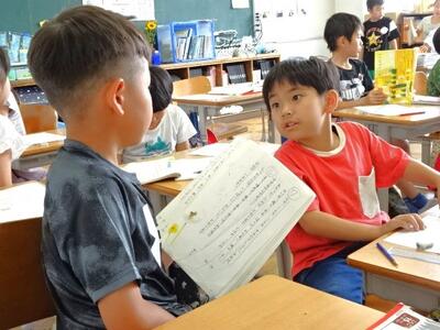【2年生】2年生になると、ペアで話し合ったり、答えを確認し合ったり、グループ活動で意見をまとめたりと、話し合いの活動があたりまえのようにできるようになります。